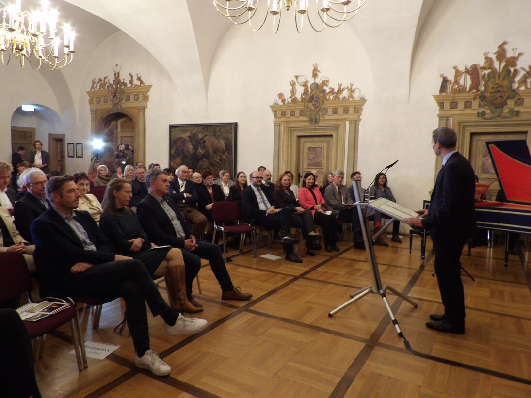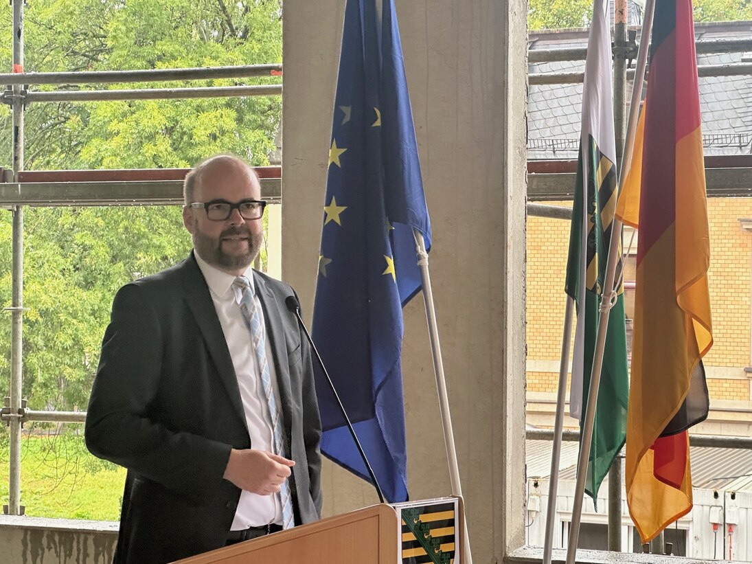 Am 2. Dezember hat Sebastian Hecht, Amtschef im Sächsischen Staatsministerium der Finanzen, offiziell Herrn Falk Reinhardt in sein Amt als neuen Technischen Geschäftsführer eingeführt. Die feierliche Amtseinführung fand in der Hochschule für Musik Carl Maria von Weber Dresden statt. Die Anwesenheit der zahlreichen Gäste, darunter Vertreter des Landtages und der Staatsregierung, viele Nutzer, kommunale Akteure, Vertreter von Verbänden sowie Kolleginnen und Kollegen aus dem SIB und dem SMF, unterstrich den feierlichen Rahmen und führte zu einem gelungenen Austausch zwischen allen Beteiligten. Petra Wesseler, Präsidentin des Bundesamtes für Bauwesen und Raumordnung, hat die Veranstaltung mit einem interessanten und kurzweiligen Gastbeitrag bereichert.